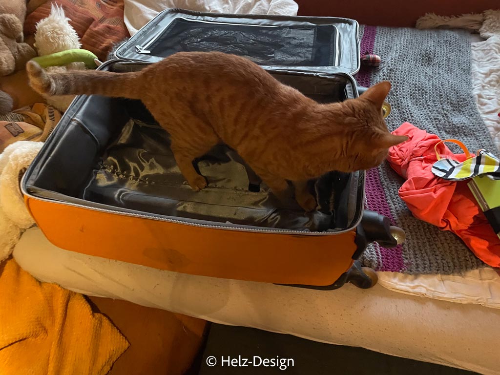 Beim Packen hatte ich auch gute Unterstützung. Yoshi und besonders Kirby mußten den Koffer ganz intensiv begutachten.