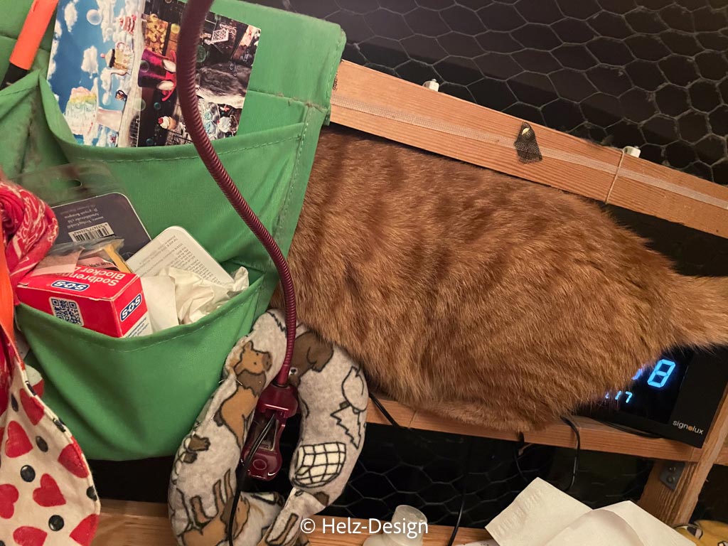 Die vermißte Jeans war noch in ihrer Kiste! Nächstes Mal, wenn ich so rumirre, bitte sofort sagen: „Helen, guck in der Kiste nach! Danke.