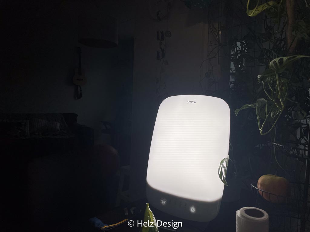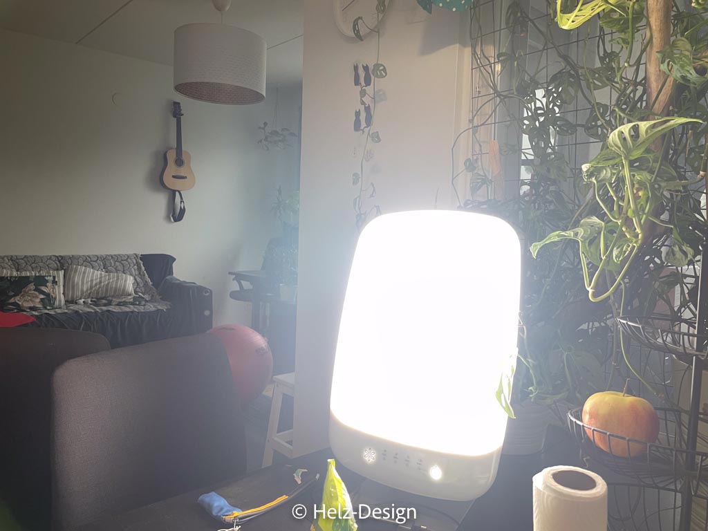 Und ich muß natürlich Sanna-Leenas tolle Tageslichtlampe testen. Soll gegen Winterblues helfen. Einmal hocke ich mich davor. Die nächsten Tage vergesse ich es. Hab ja auch keinen Winterblues.